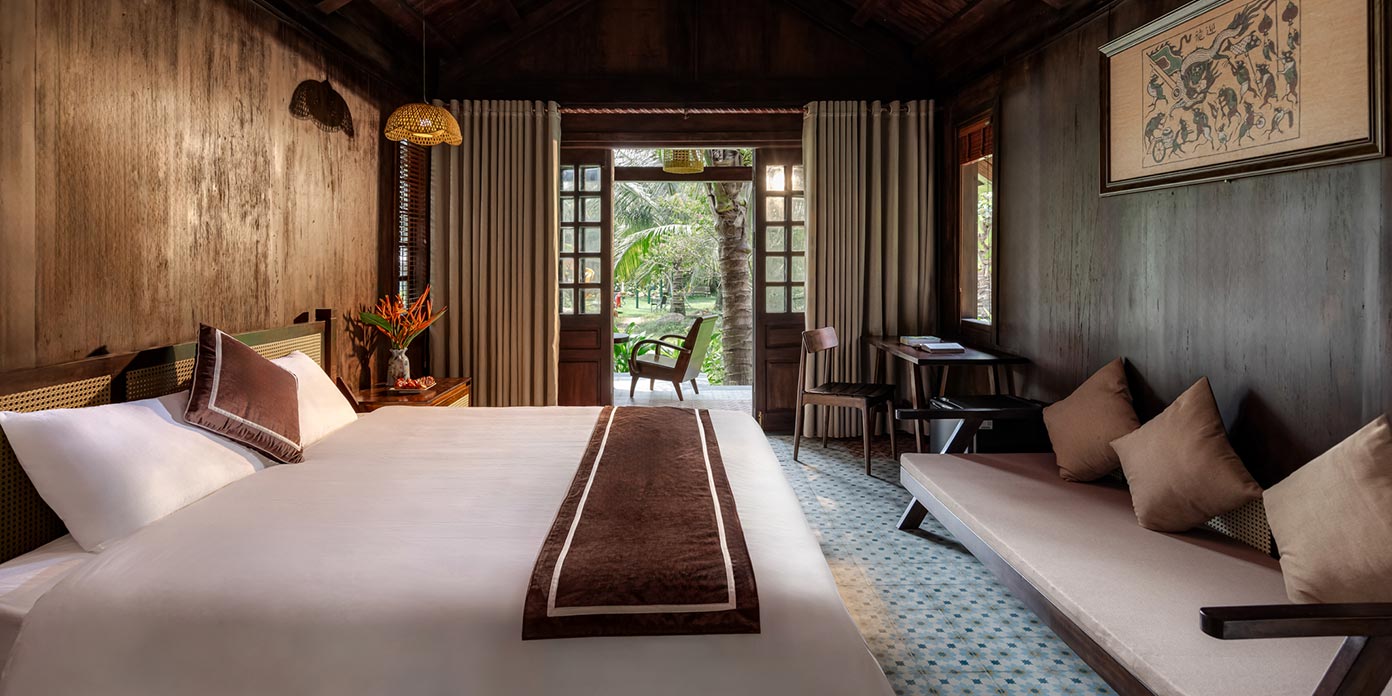 Indulge in relaxation with our Luxury Double Room. With an area of 40 square meters, this cozy and luxurious space is sure to be a perfect retreat after a day of exploration. Embodying Vietnamese traditional style, the room is constructed entirely of wood, offering a unique rustic charm.
