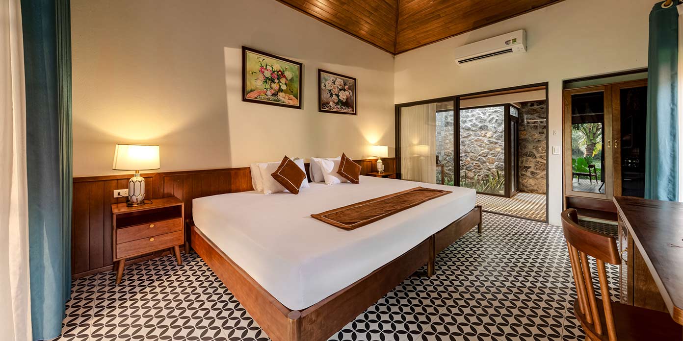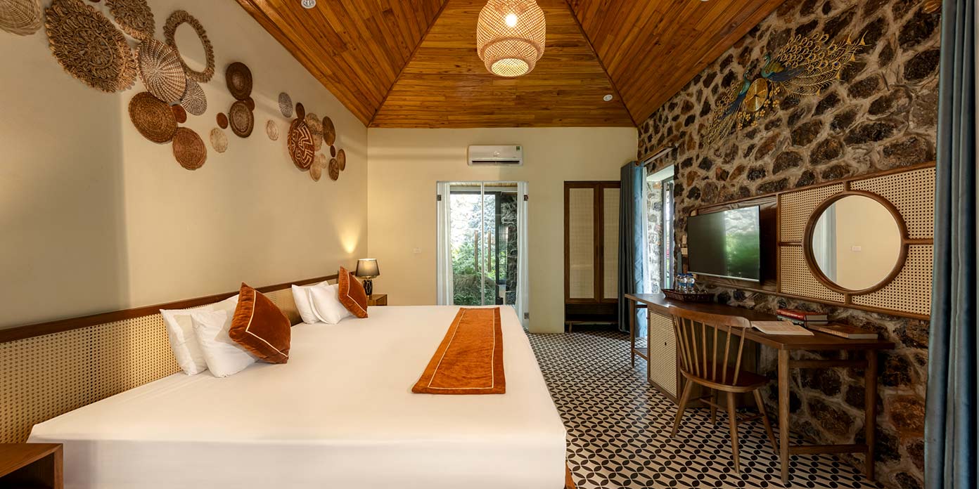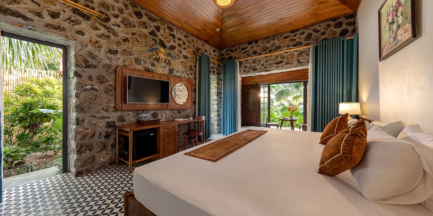 A very pleasant lodging space awaits in theStone Deluxe Room of Nature Garden Ecolodge. Everything is designed and arranged within a cozy, compact area to create a warm atmosphere. Featuring warm-toned interiors that blend classic styles with wood and stone, the Stone Deluxe Room maintains its elegance and sophistication in every detail.